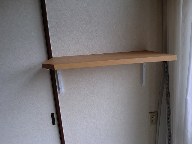 事務所の掃除用具入れに、棚板を取り付けしました。